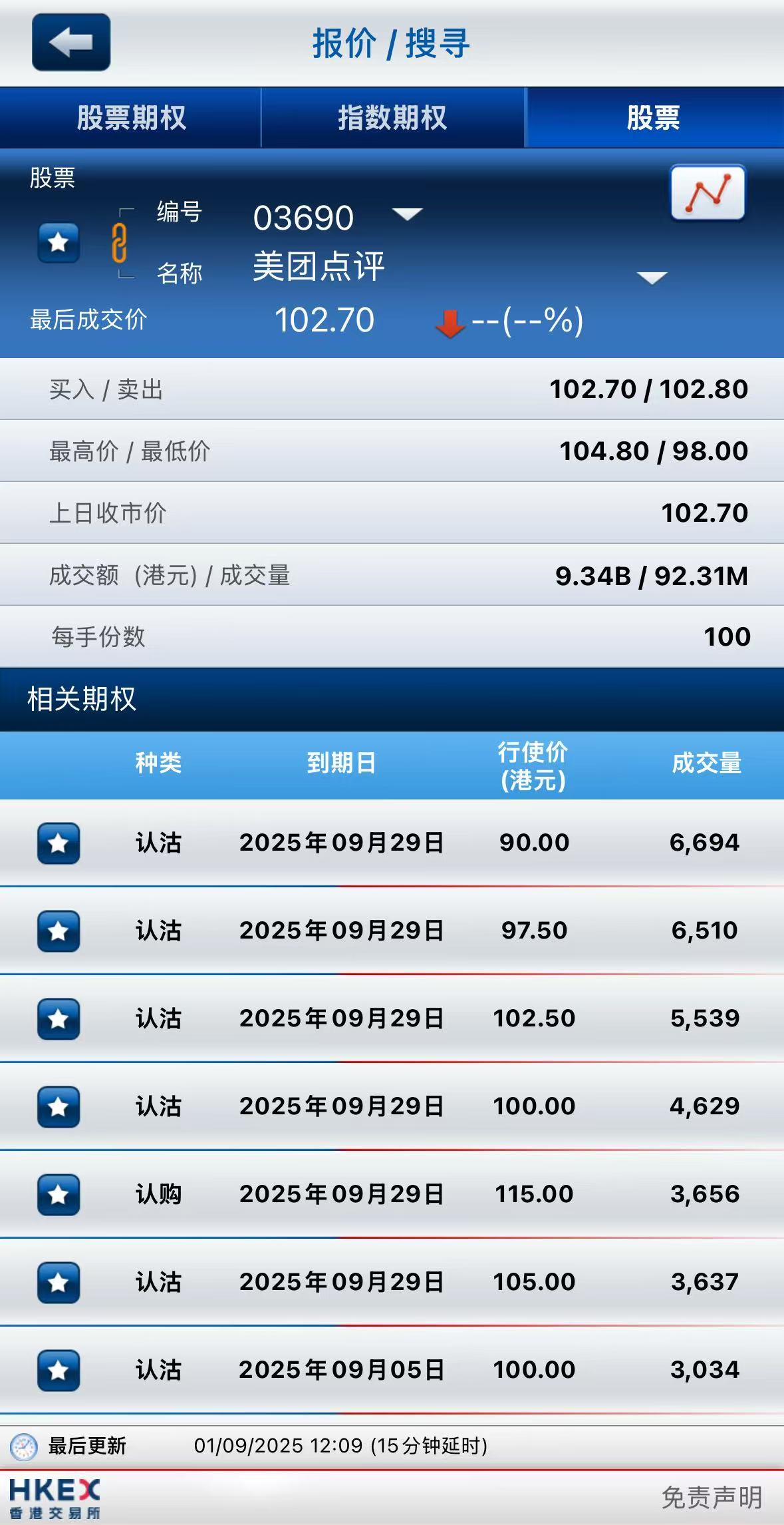 美团-W半日股价平收,该股上周累跌逾13%,此前财报显示Q2经调整净利润同比下滑89%,预计Q3核心本地商业业务将出现大幅亏损;期权方面,美团-W半日成交超9.6万张,其中,于9月29日到期90港元行使价的认沽期权成交居前,成交超6600张。