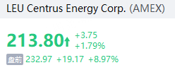 Centrus Energy涨近9%,Q2业绩好于市场预期。