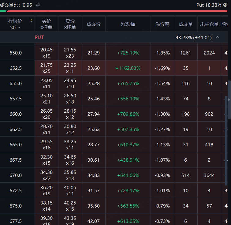 受行情刺激,礼来的PUT成交价格大幅飙升,最高涨幅超1100%。