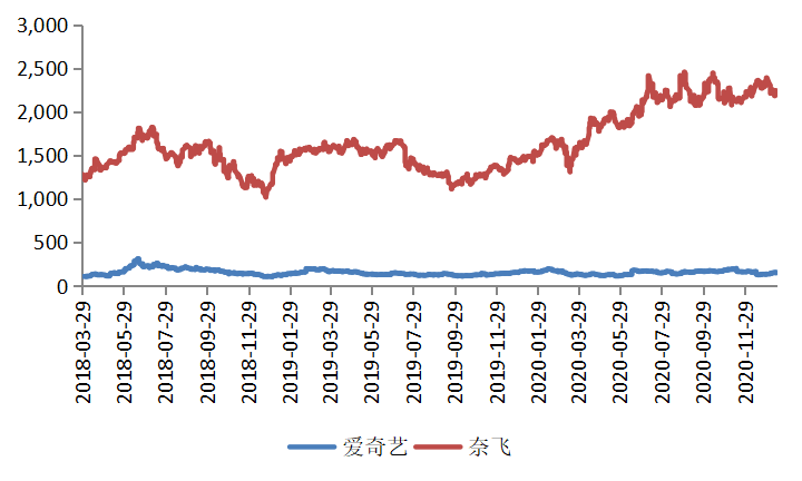 顶着中国第一大长视频平台的“帽子”,爱奇艺无法避免地被拿来和美国最大的流媒体平台奈飞(NASDAQ:NFLX)作比较。然而,无论是经营业绩还是资本市场表现,爱奇艺都难以对后者“望其项背”。