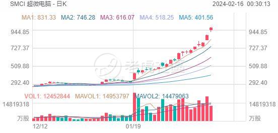周四,超微电脑盘中大涨超10%再创历史新高。该股近期走出了一波疯狂上涨行情,月内大涨超80%,年内大涨超240%,近12个月暴涨近900%。