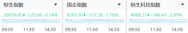 1、受“沙特阿美炼厂疑似遇袭、霍尔木兹通行受阻”等报道影响,油价预期上行、避险情绪升温,港股三大指数承压下行。恒指跌2.14%、恒科指跌2.89%,跌幅居前的多为成长与消费链条。