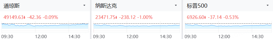 周三(1月14日),美股三大指数收跌。道指跌0.09%,报49149.63点;纳指跌1%,报23471.75点;标普500指数跌0.53%,报6926.60点。
