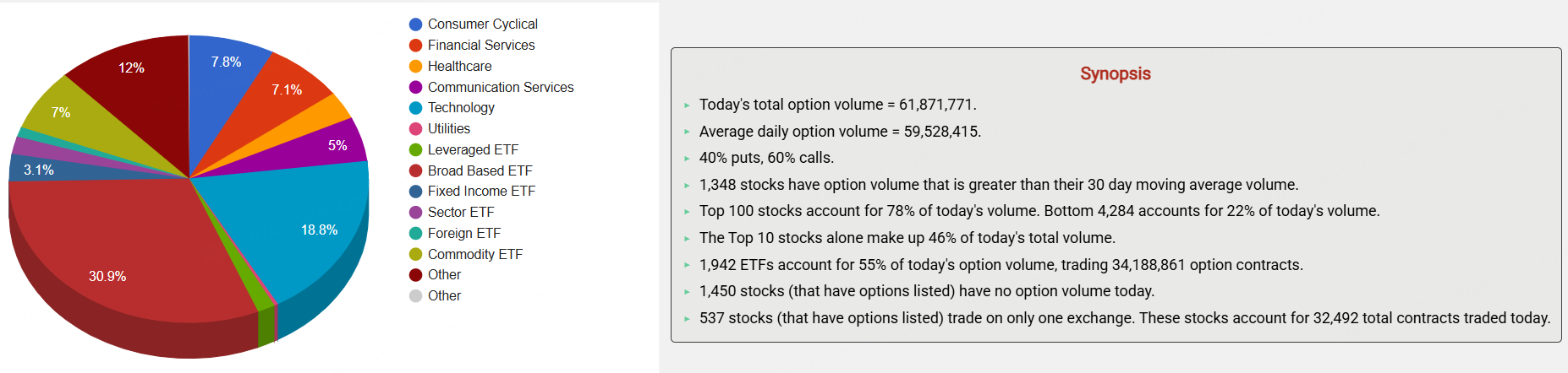 期权市场总成交量61,871,771张合约,其中看涨期权占比60%。