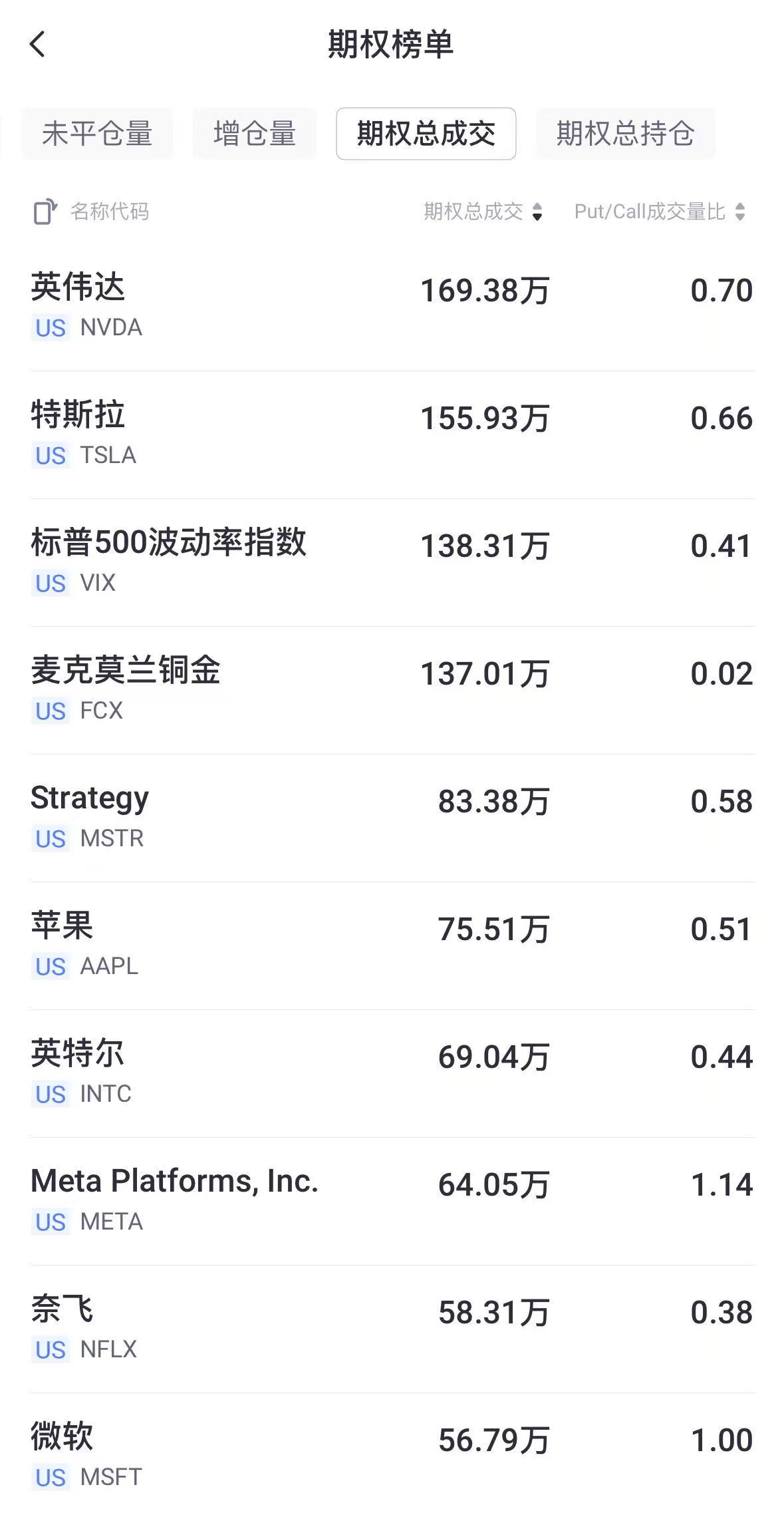 二、期权成交总量TOP10