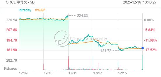 自上周三收盘以来, 甲骨文 (Oracle)的股价已下跌约 15%,其五年期信用违约掉期(CDS)利差则从 9 月份的不足 60 个基点飙升至 147 个基点。