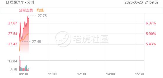 本周一(6月23日)美股盘初, 理想汽车 涨超6%领涨热门中概股,截至发稿报27.75美元:
