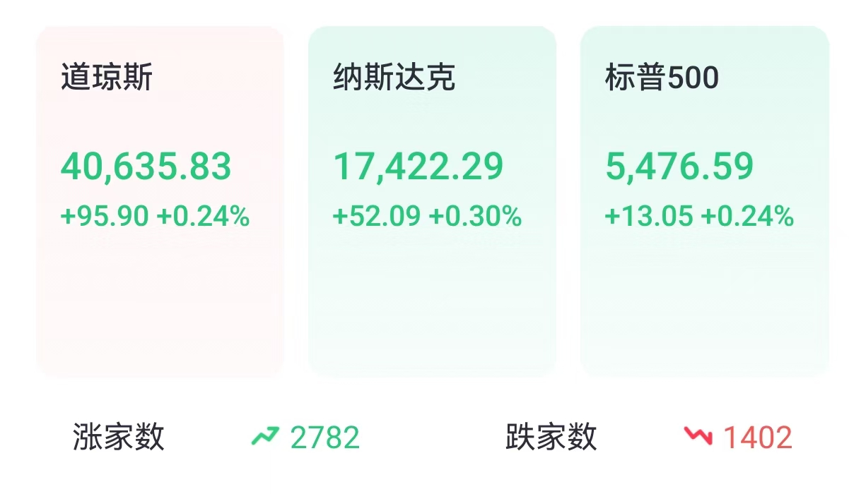 本周二(7月30日)美股三大股指高开,截至发稿道指涨0.24%,纳指涨0.30%,标普500涨0.24%。