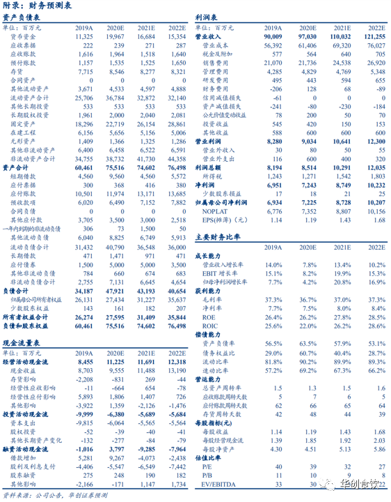 投资建议:短期负面担忧被放大,正面因素将逐一展开,前期回调给予加配良机,重申“强推”评级。我们在前期深度报告《伊利VS农夫:周转为王与盈利制胜》已深入论述竞争格局优化是伊利净利率回升的基础,业务驱动引擎转型将推动伊利盈利水平有望回升至前期近10%高点。年内来看,下游白奶需求旺盛、原奶上涨周期向下游的提价传导、奶粉业务调整成效显现,均是收入稳增及盈利改善的保障,也将是年内持续展开的催化。公司当下市值安全边际充足,静待股价催化剂逐一展开,我们维持20-22年EPS预测1.19/1.43/1.68元,给予22年35-40倍PE,维持目标价区间58-67元,重申“强推”评级。