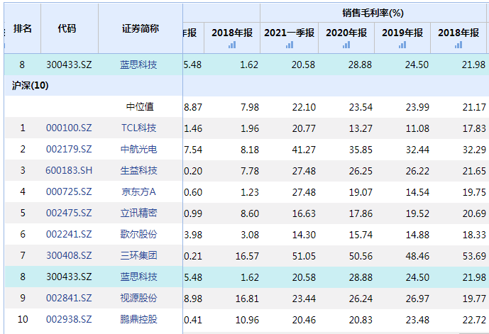 在电子元件销售毛利率基本与蓝思科技持平,在行业中领先。