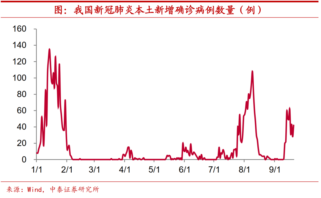 本土疫情严重干扰。但由于7月底8月初本土疫情卷土重来,日新增确诊病例曾突破100例,且全国超过半数省份均有波及。疫情防控措施的收紧,严重地干扰到消费端特别是服务消费的恢复。如果四季度疫情相较于三季度能够有所缓和,即便只是波及范围的缩小,消费也有望触底反弹。
