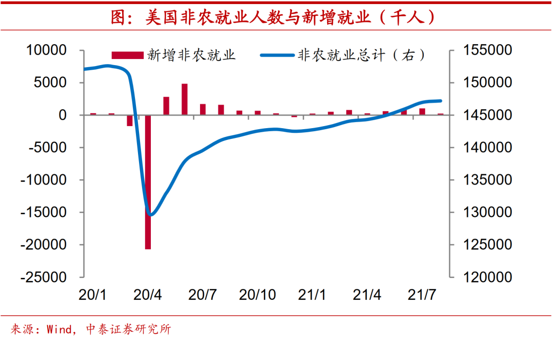 Taper渐行渐近。美联储主席鲍威尔在JacksonHole会议上表态,年内或将启动Taper。不过从当前美国就业市场情况来看,离完全恢复尚有不小的距离,美联储的这一表态也明显偏鸽。