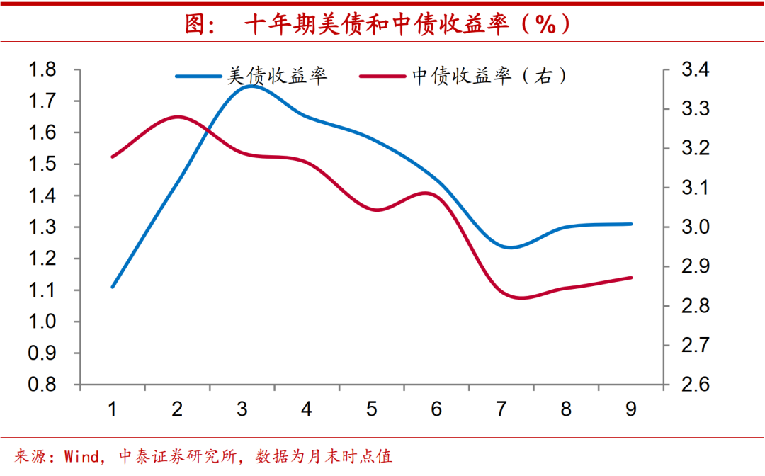 债市或有短期调整。虽然货币政策宽松持续,但我们认为,美债收益率上行再度开启,加上国内温和的信用改善,使得四季度债券市场或将面临短期调整。不过,经济下行态势不改决定了从中长期来看,债市收益率依然趋于走低。