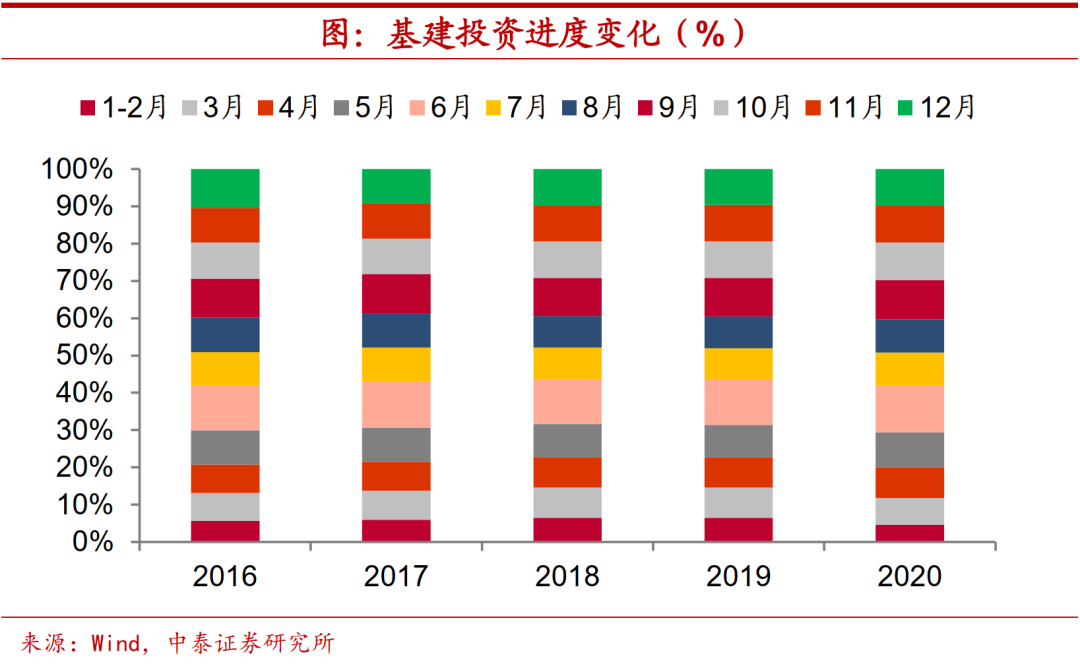 基建反弹动能不强。而从过往的经验来看,地方政府专项债发行进度和基建投资进度之间并不存在显著的对应关系,反倒是基建投资自身进度存在着较强的规律性,前八个月基建投资支出规模接近12万亿,如果按照过往同期支出进度来估算,全年基建投资支出规模应该在不到20万亿,对应的基建投资增速很难超过3%。考虑到当前基建投资增速明显处于偏低水平,我们预计,节奏上来看基建投资当月增速走势或将呈现V形态势,大概率会出现触底反弹的过程,但总体动能并不算强。