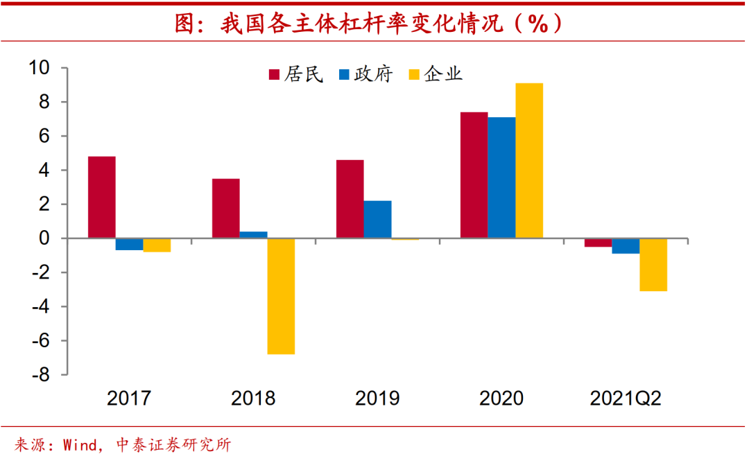 杠杆率显著下滑。从信用周期的角度来看,上半年我国信用收缩幅度较大,表现为宏观杠杆率的显著下滑。今年上半年我国宏观杠杆率较去年底下降4.5个百分点,其中企业部门下滑幅度最大,达到3.1个百分点,而居民和政府部门杠杆率下降均不足1个百分点。