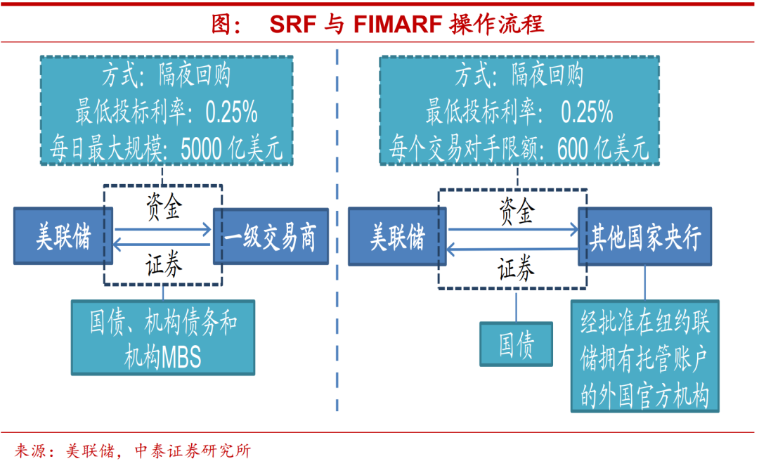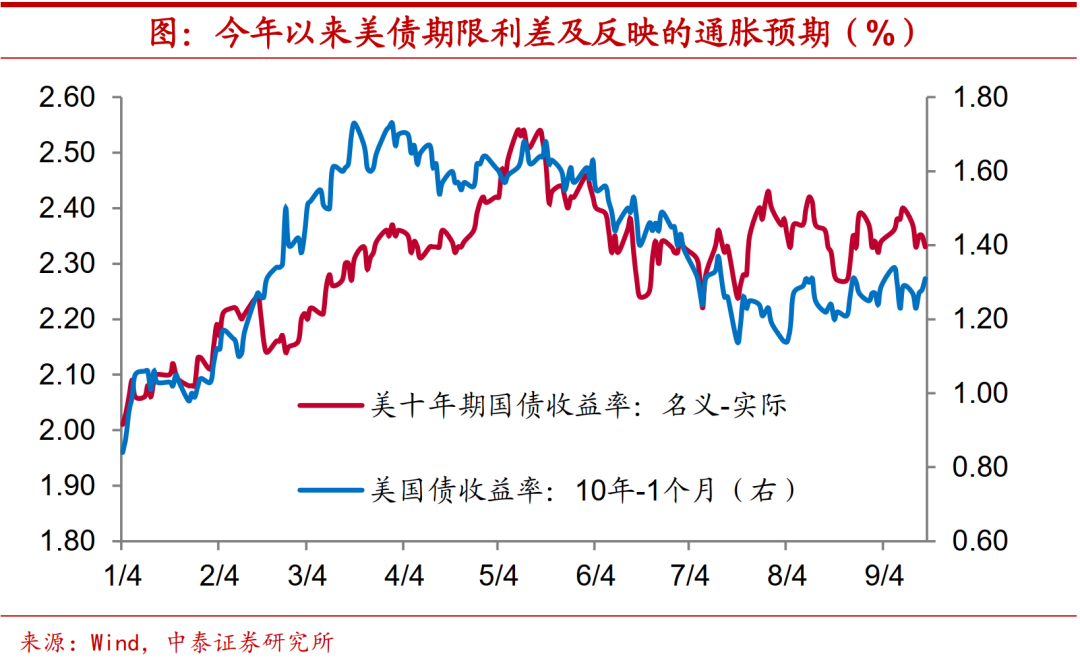 政策工具护航,回升斜率平缓。此外,近期美联储议息会议宣布设立两种常设回购工具,分别是针对国内的SRF(Standing repo facility)以及针对国外的FIMARF(Standing FIMA repo facility),用以向市场提供流动性支持。事实上,当前隔夜逆回购规模屡创新高,反映出市场流动性较为充裕,新工具的设立看似多此一举。但其实美联储是吸取此前“钱荒”时期的经验教训,意在未雨绸缪,平抑未来货币政策转向可能引发的市场波动。在新工具的呵护下,我们预计,美债利率上行的斜率也将较为平缓。