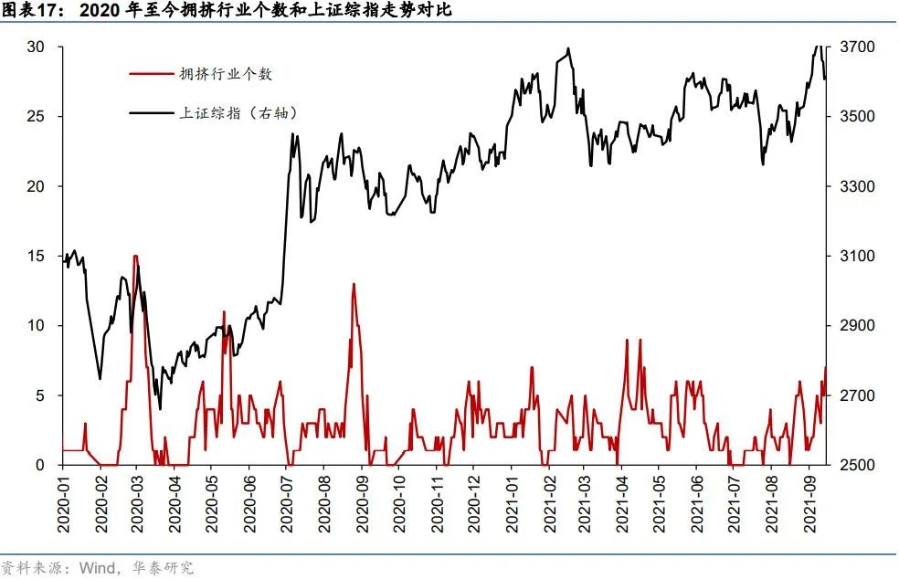 近期沪深两市日成交额保持在1.3万亿以上水平,行业间的分化程度处于历史高位,板块间轮动速度明显加快。我们认为现在的市场对于高景气方向的关注度尚在,具有持续业绩表现或是具有业绩增长空间的行业还是存在配置机会,但是活跃的成交会将高景气行业的价格快速推高,所以也需要实时关注各行业的交易拥挤风险。