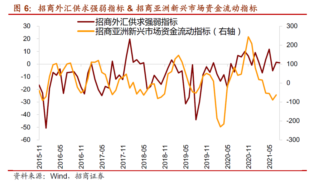 近期资本流动形势方面,受美联储政策边际收紧预期扰动,VIX指数在较低水平上偶有波动,港元有所贬值,7、8月招商外汇供求强弱指标回升但仍然低迷,表明外汇市场供求较6月略有改善但程度有限。领先两个月的招商亚洲新兴市场资金流动指标7月小幅回升但维持低位,预示着9月资本流动形势或仍维持低迷。