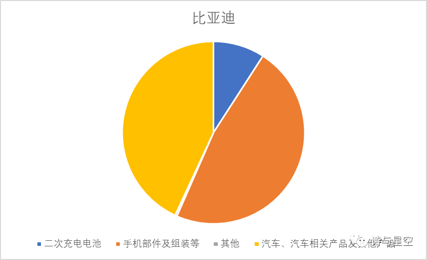 但到了2021年,由于承接了一部分苹果iPad等产品的代工,比亚迪的营收构成发生了不小的变化。