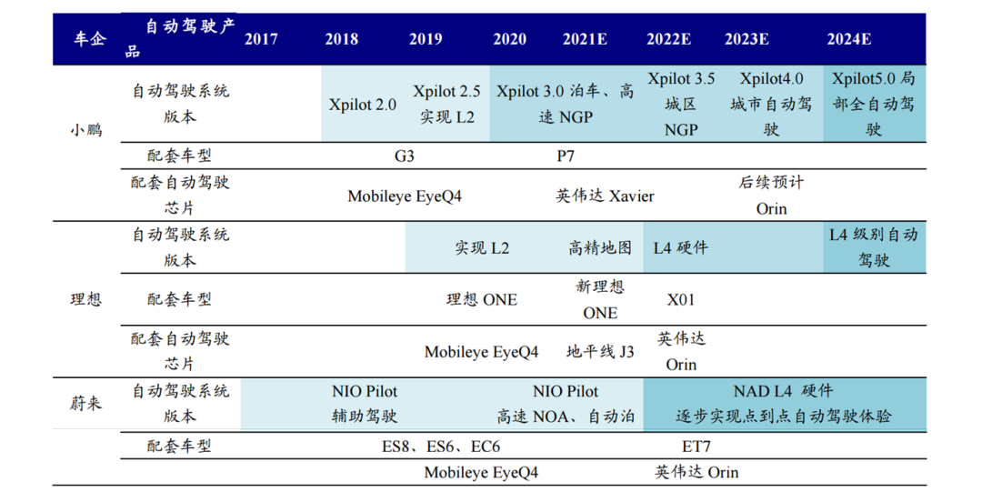 图15:“蔚小理”的自动驾驶产品推进节奏,资料来源:小鹏/蔚来/理想公司官网,开源证券