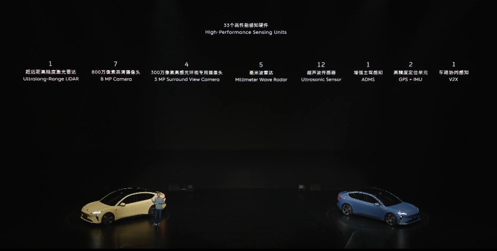 最近市场关注较多的热门车型蔚来ET5就是其第二代平台的新车型,届时ET5将标配ADAM超算平台和AQUILA超感系统,前者配备1016T高算力,后者包含1个超远距激光雷达在内的33个感知硬件,可实现标配的19项安全与辅助驾驶功能。