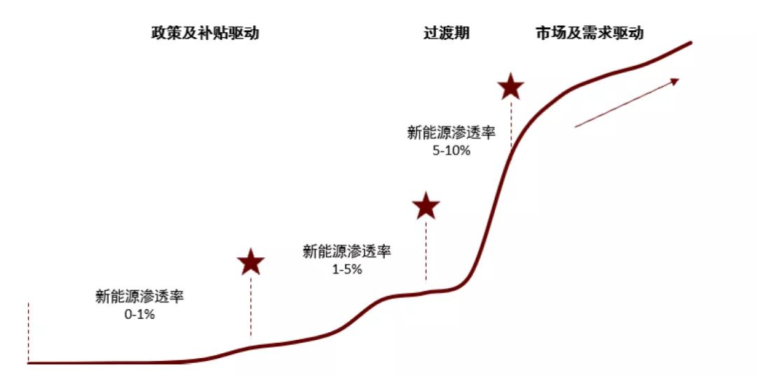 图:新能源突破S型增长曲线关键节点,来源:中汽协、中金公司研究部