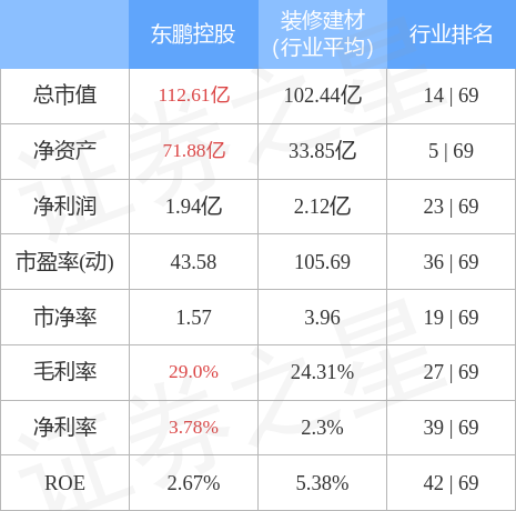该股主要指标及行业内排名如下: