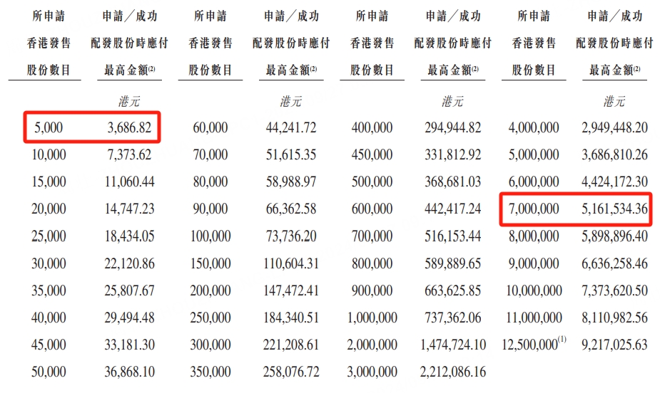 乙组门槛为700万股,申购所需资金约516.15万港元。