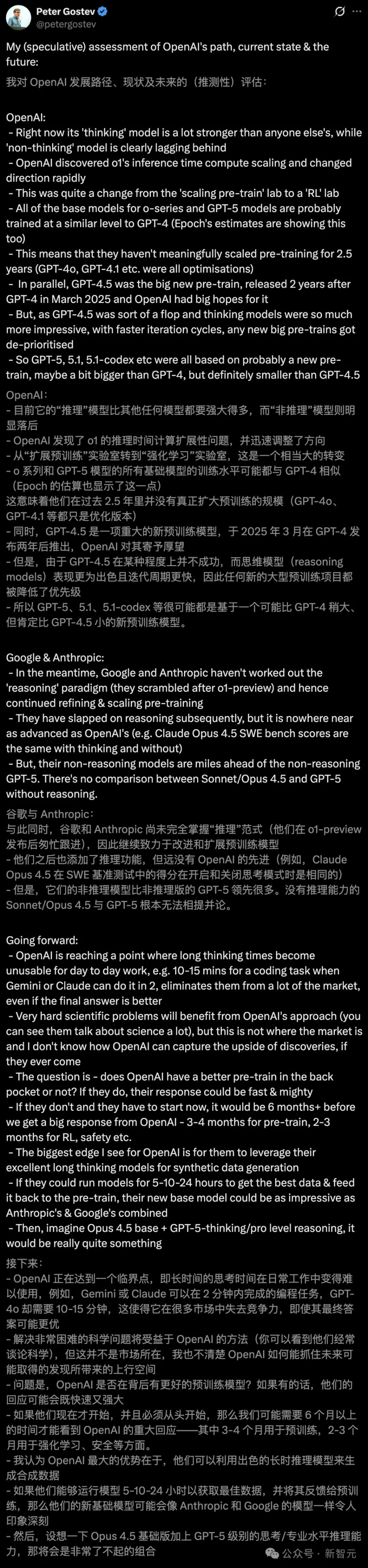 相较之下,自2024年5月GPT-4o诞生之后,OpenAI的预训练却毫无进展.....