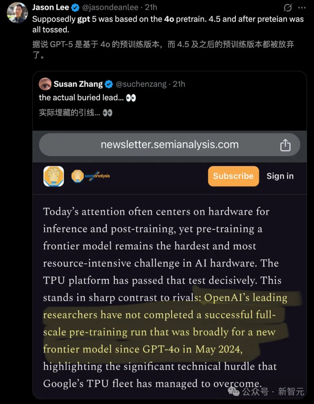 传言称,GPT-5的基石仍是GPT-4o,且GPT-4.5之后的预训练版本,都被OpenAI放弃了!