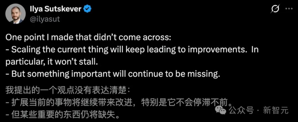 恰在昨天,Ilya最新发文称,Scaling不会停,但某个重要的东西仍然会缺失。