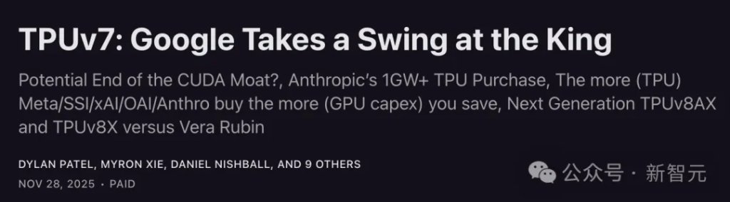 文章中,高级分析师强调:谷歌正手持TPUv7这把利剑,向英伟达王座发起冲锋,或将终结CUDA护城河。