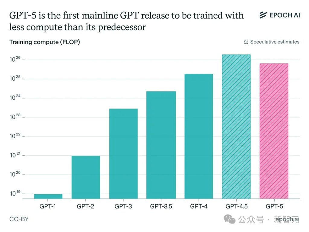 相比前代GPT-4.5,GPT-5很可能消耗了更少的训练算力。
