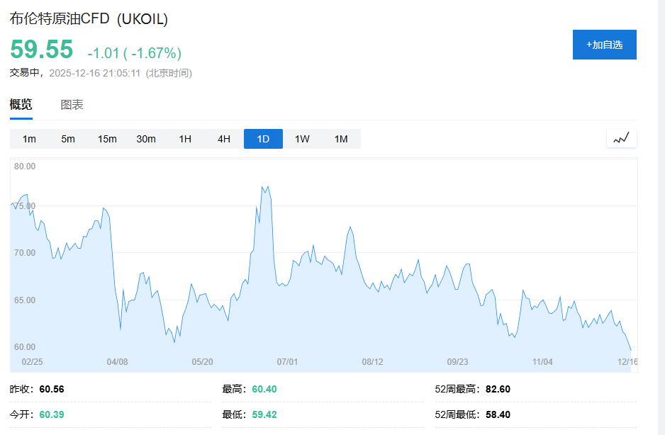 俄乌停火谈判的最新进展让交易员得以顺势做空原油。尽管乌克兰仍在打击俄罗斯炼油设施和里海地区资产,黑海航运依然面临风险,特朗普政府还扣押了一艘委内瑞拉超级油轮,但价格走势明确显示——每当传出和谈乐观消息时,原油都会承受下行压力。