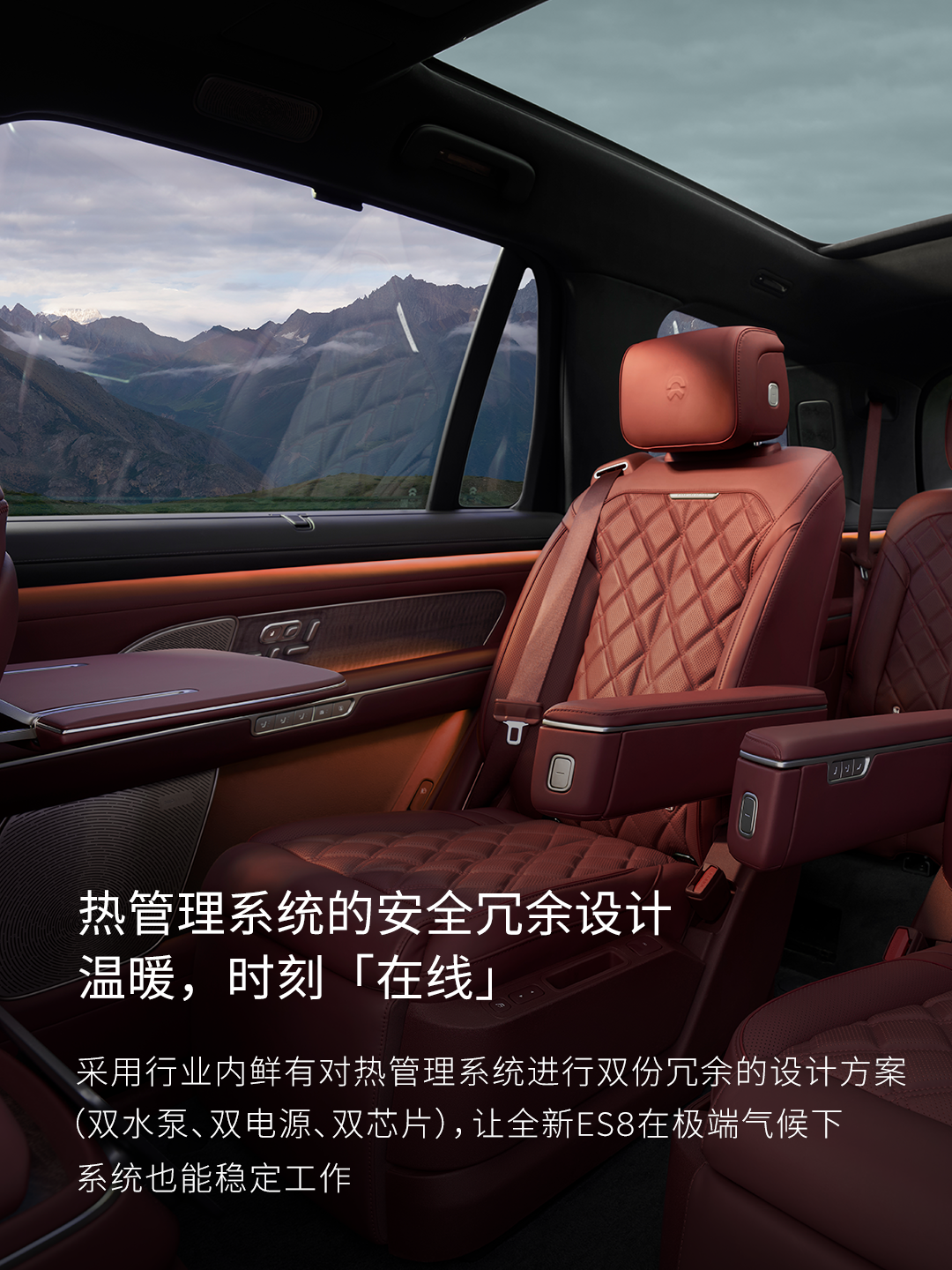 ❄️冬季出行,如何面对严寒挑战?全新ES8以精准的热管理系统🌡️不仅让座舱和电池预热更快🔄还能对热量进行精准的分配,实现高效节能🔧热管理系统高度集成化设计📦不仅带来230L超大前备舱🛡️更以双份冗余设计方案✅确保系统在极端气候下也能稳定运行全新ES8直面严寒挑战带来全场景舒适感受#蔚来 #蔚来全新ES8点击即刻预约试驾蔚来全新ES8