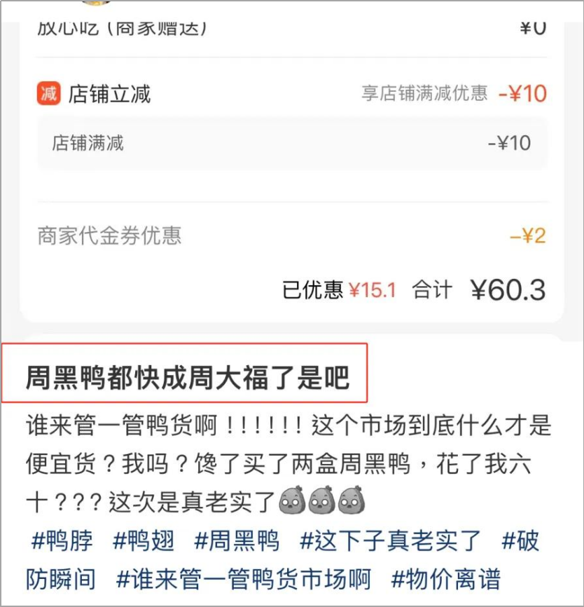 想当初,周黑鸭立志做“鸭脖界爱马仕”,选在高铁、机场等场所开直营店,一度还能拿来送礼。2017-2020年,周黑鸭客单价均维持在60元以上,以至于网友吐槽“周黑鸭快成周大福了”。