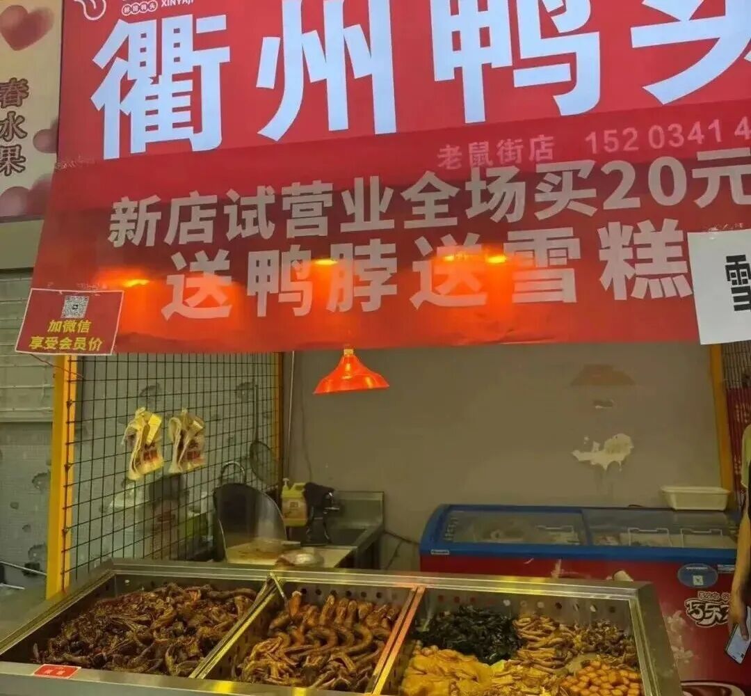 相比之下,同样是卖鸭货,近些年默默开出近3万家店的衢州鸭头,出圈之路朴实无华。它不讲品牌故事,没有高端包装,主打的就是便宜。一根鸭脖8块钱,一只鸭头五六块,买起来毫无压力。