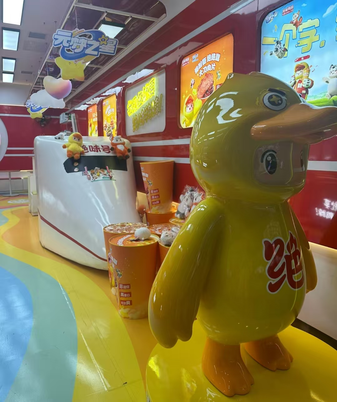 它甚至还有当星巴克的心,推出过几百平的ins网红鸭店,开放堂食,想让人们“边吃鸭脖边社交”。