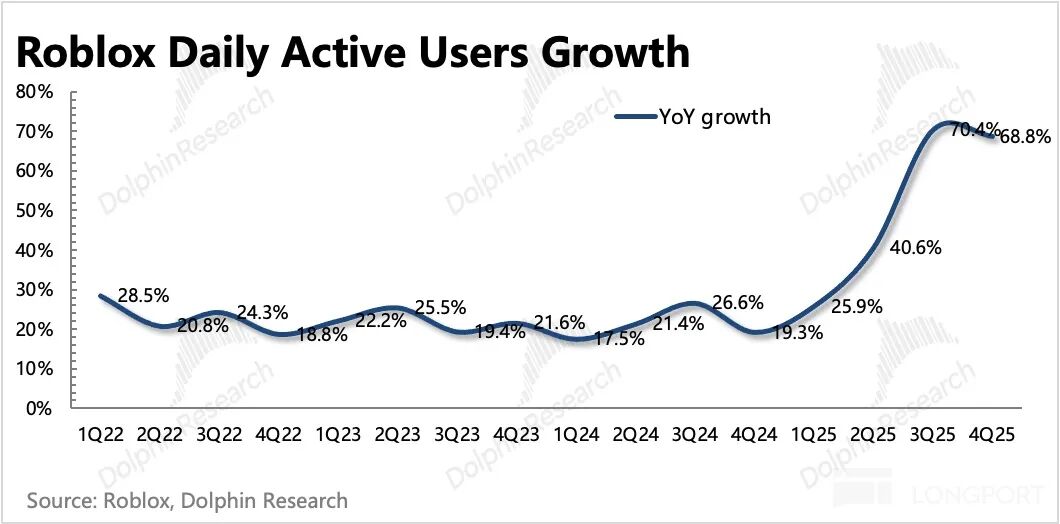对Roblox来说,流水比收入更具备前瞻性,因此也就更值得关注,这次Q4以及对今年Q1的指引均超预期。此前市场担心今年的高基数压力,预期流水增速要低于一直以来的中长期指引20%。