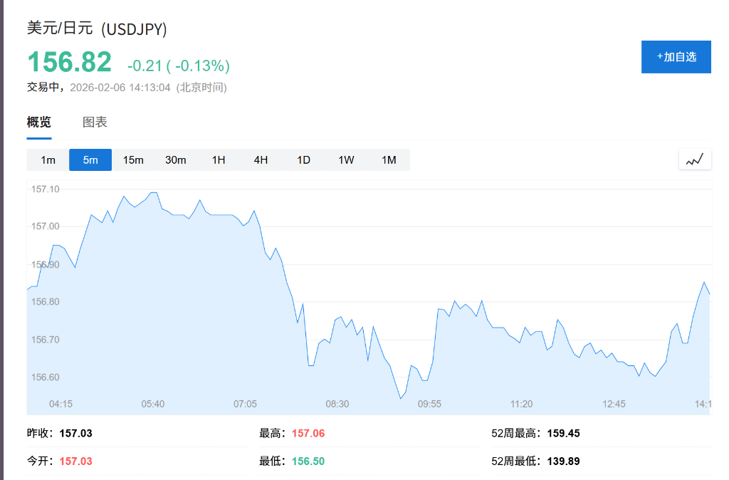 Masu发表讲话后,日元兑美元维持在156.82附近交易。日本央行近期已表示对货币疲软影响通胀的担忧日益加剧,因日元疲软态势持续。