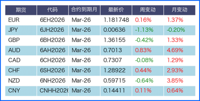 上周美元指数震荡上行,周线累涨0.54%。周初受美联储主席提名人沃什相关消息支撑走强,后因美国劳动力市场数据疲软承压。沃什的鹰派过往与近期降息主张,叠加缩表观点,初期支撑美元;但后续公布的美国初请失业金人数超预期、职位空缺数走低,加剧就业降温担忧。同时,由于美联储官员公开表态偏谨慎,市场对年内降息预期升温,焦点转向推迟公布的1月非农就业报告,预期该数据将成为美联储政策路径的关键催化剂。