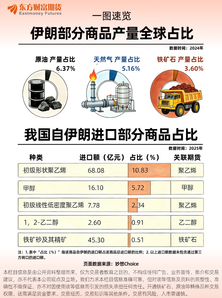 伊朗作为资源大国,2024年原油、天然气全球产量占比均超5%(数据来源:妙想choice)。