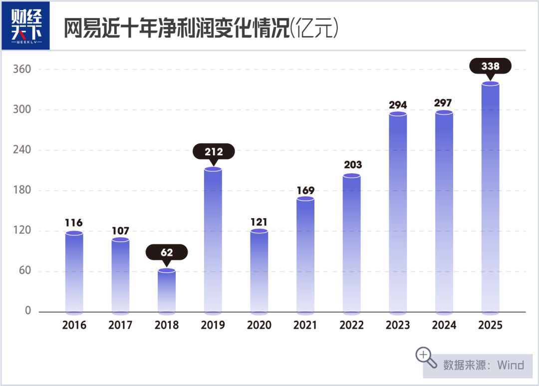 2026年2月11日,网易发布了2025年业绩情况:公司全年总营收1126亿元,净利润338亿元,同比增长13.68%。截至2025年12月31日,网易持有的净现金储备高达1635亿元,这一数额较2024年底的1315亿元有了显著增长。