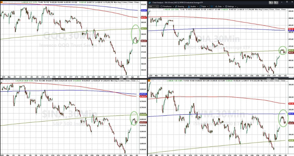 开盘时,伴随特朗普讲话的乐观预期,股指迅速拉升并触及关键技术阻力位;但随着更多关于中东冲突的头条新闻爆出,早盘的轧空行情未能企稳,涨幅迅速收窄。全天美股三大股指均未能稳住阵脚,反而伴随着消息面的反转,上演了三次冲高回落的“拉高抛售(pump'n'dumps)”。