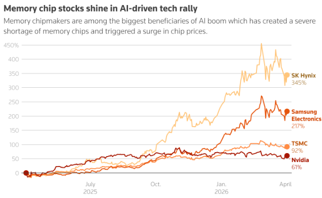 这些担忧,以及谷歌(GOOGL.US)上个月发布的名为TurboQuant的内存节省技术,都导致了内存芯片股票的抛售潮。自2月28日伊朗战争爆发以来,三星的股价已下跌14%。尽管如此,受大型科技公司数千亿美元人工智能投资计划的提振,三星股价今年迄今仍上涨了50%。