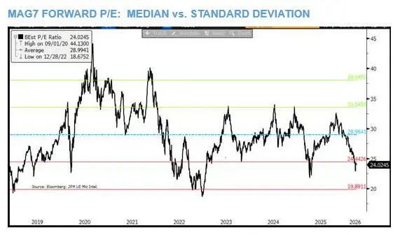 摩根大通市场情报部门负责人Andrew Tyler表示,标普500指数7000点"感觉触手可及",市场情绪的好转、科技股估值的阶段性回调以及机构和CTA的极度看空仓位,共同构成推动指数上行的三重动力。