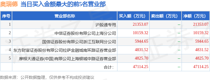 证券小知识:龙虎榜是交易所披露的竞价交易公开信息,现身龙虎榜的个股都是当日最为活跃的个股,是投资者日常重点关注的数据。交易所公布当日买入金额和卖出金额前五名的席位,其中一些席位代表特殊意义,如机构专用席位是指基金专用席位、券商自营专用席位、社保专用席位、券商理财专用席位、保险机构专用席位、保险机构租用席位、QFII专用席位等机构投资者买卖证券的专用通道和席位。深股通专用、沪股通专用为北向资金的交易席位。