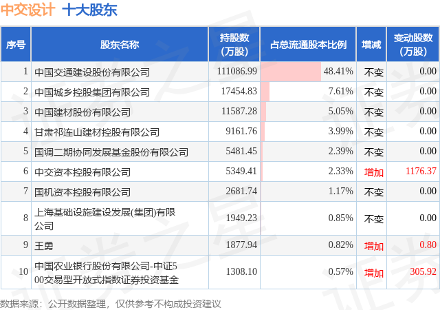 根据中交设计2025年年报公布的十大股东详情如下: