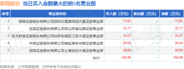 证券之星消息,沪深交易所2026年4月20日公布的交易公开信息显示,联翔股份(603272)因有价格涨跌幅限制的日收盘价格跌幅偏离值达到7%的前五只证券登上龙虎榜。此次是近5个交易日内第1次上榜。