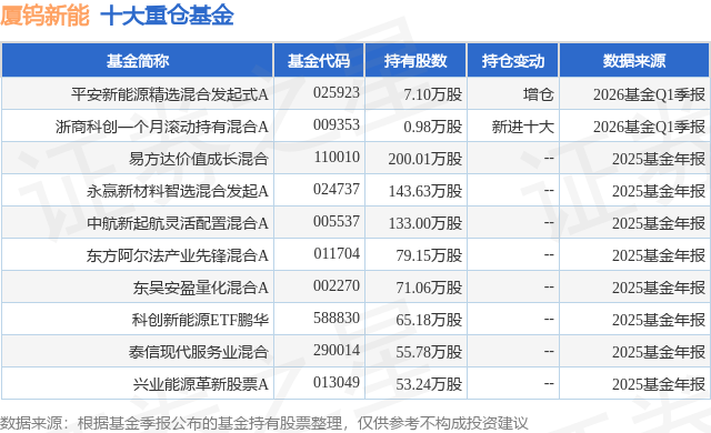 重仓厦钨新能的前十大公募基金请见下表:
